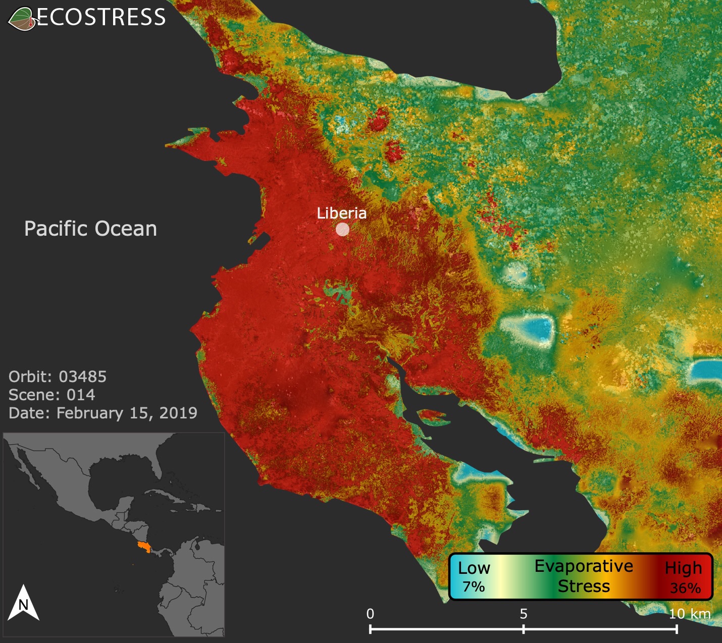 NASA’s ECOSTRESS service is combining space-based observations with experience on the ground to provide detailed maps of functional stress to ecosystems, which can affect water and food supplies, and also biodiversity and nature’s life supporting safety net. Image credit: NASA-JPL.