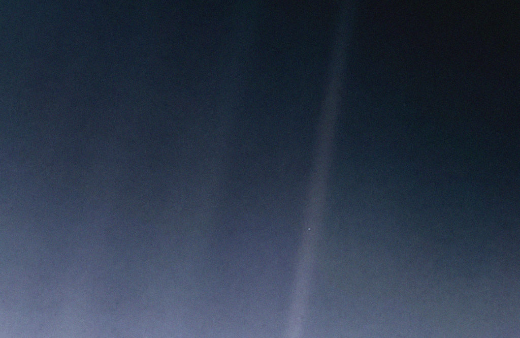 The featured image at the top of this page is the photograph known as “The Pale Blue Dot”. It was taken by the Voyager 1 space probe on Valentine’s Day 1990, from a distance of 4 billion miles, beyond the outermost planets of our solar system.